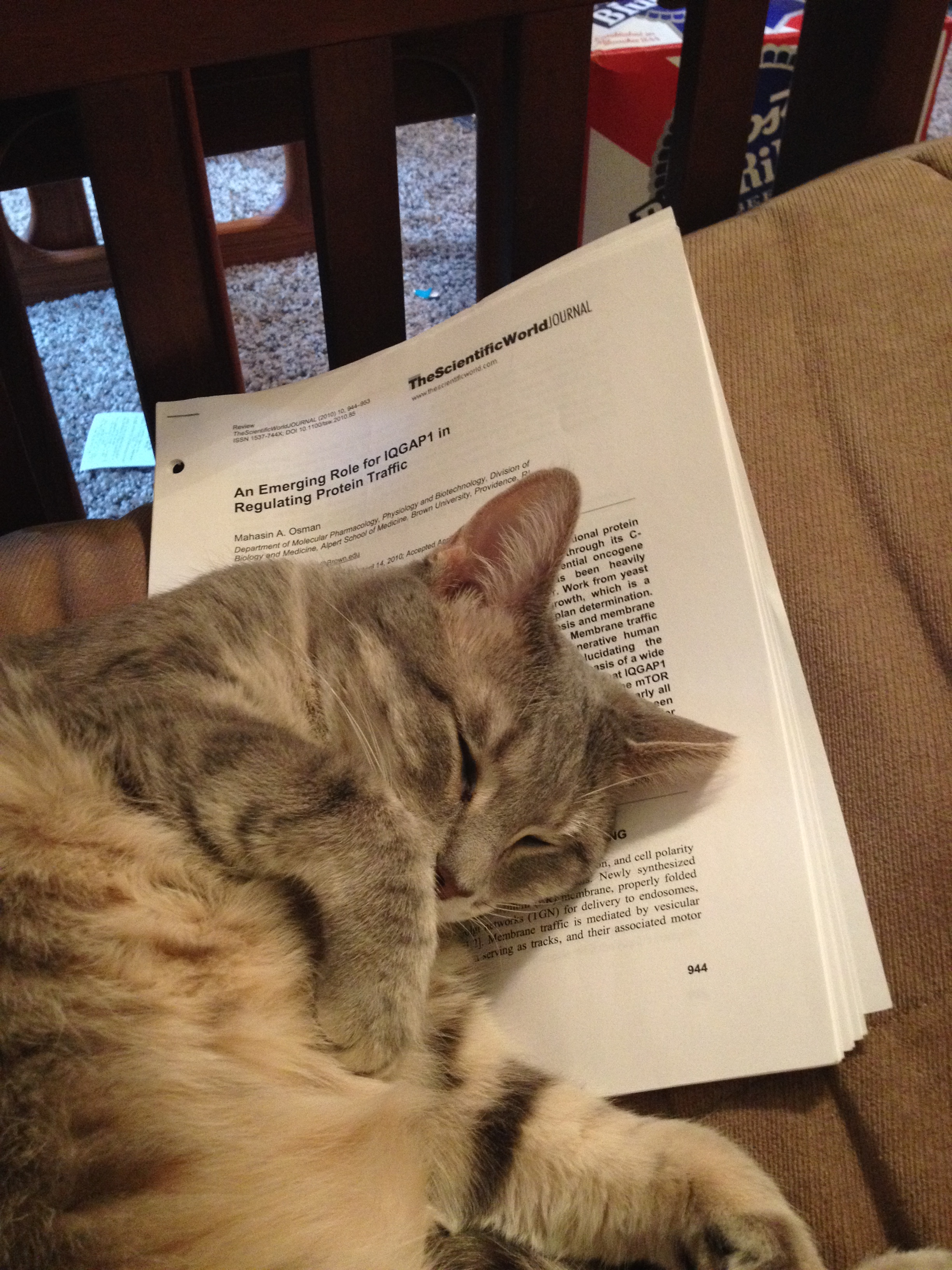 So why am I posting about my cat on a blog about med school and grad school? Well, a little while ago there was a hashtag going around twitter, #academicswithcats. Now that I’m one of them, I wanted to share some of my pictures of how this little cat has changed the way I work.